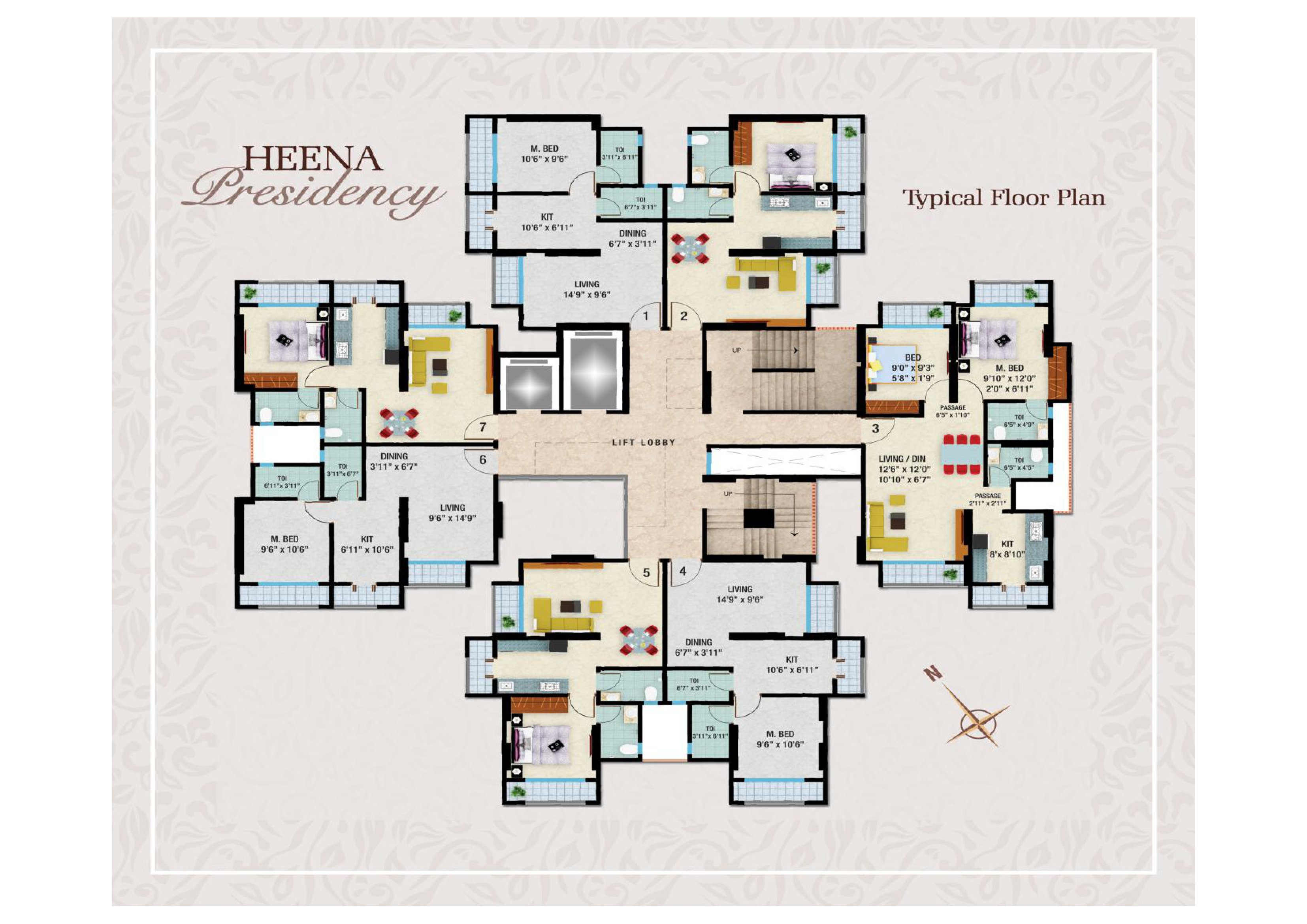 Heena Presidency is designed aesthetically with unquestionably superior amenities. Extra care is taken in designing every apartment to ensure optimum ventilation, brightness and lowest sound travel from one unit to another.